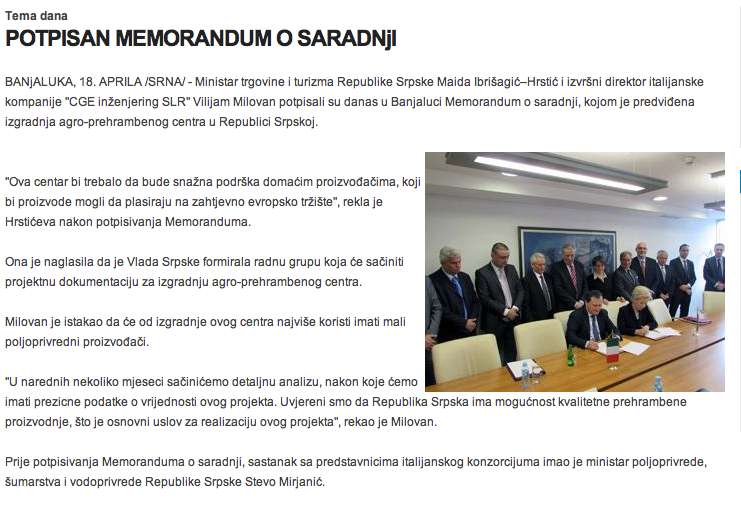 Kovačević je po potpisivanju memoranduma istakao da je to najava početka istraživanja energetskih mogućnosti RS od strane kompanije “CGE Engineering”, koja bi, kako je rekao, trebalo da počnu uskoro.